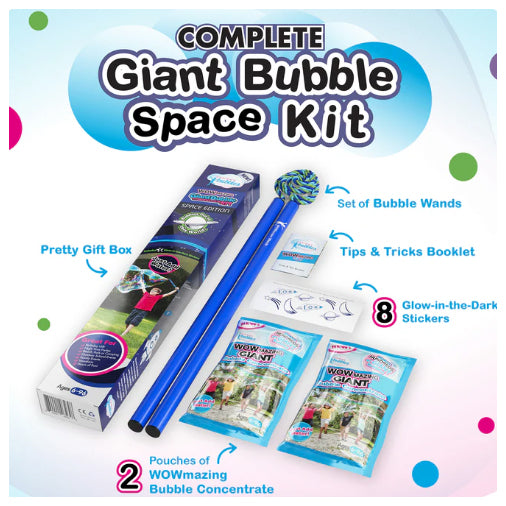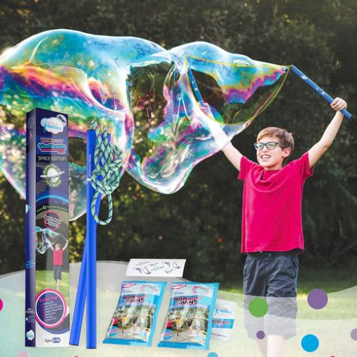 Get ready to blast off into bubble-filled fun! Launch gigantic, out-of-this-world bubbles that are sure to amaze. Know an awesome kid? This is the ultimate gift that keeps the good times flowing. It comes with everything you need for an unforgettable bubble adventure!